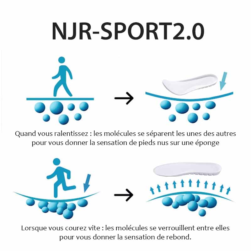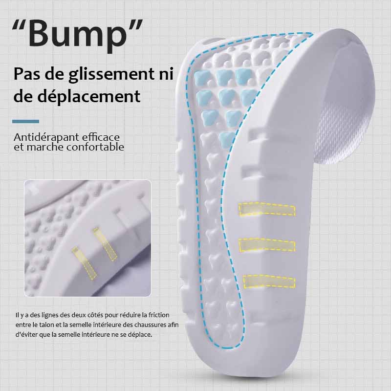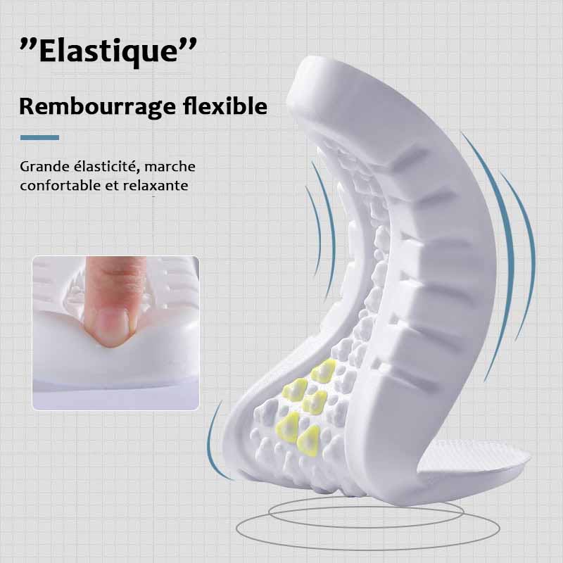 - Semelles orthopédiques avec soutien de la voûte plantaire et alignement du pied spécialement conçus.